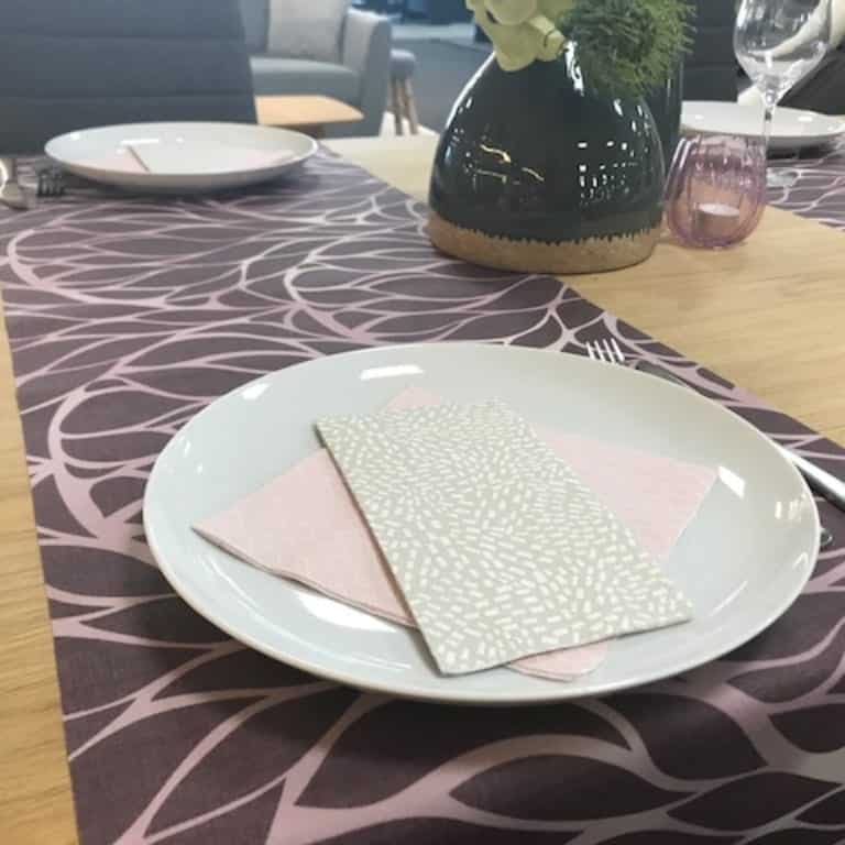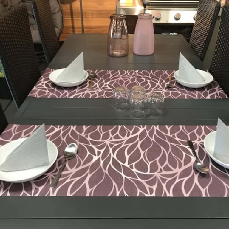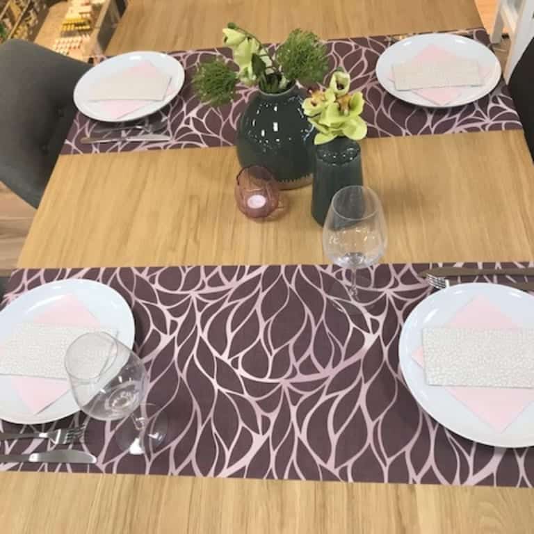 Damask, Jacquard vævet tekstildug/akryldug med tryk i flot farve. Dugen har en overfladebehandling med akryl og teflon som sikrer, at væsker ligger som perler og ikke laver pletter på dugen. Denne flotte damaskvævet dug med tryk er meget moderne og fungere både til hverdag og fest.
