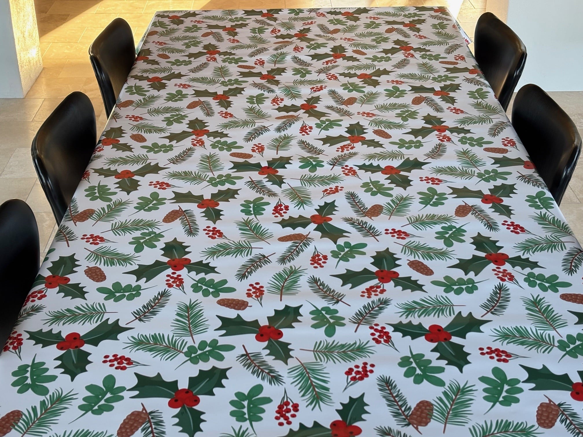 Med sit flotte julemønster og gode kvalitet, skaber dugen en fantastisk julestemning og atmosfære til bordet. Den er både praktisk og stilfuld, idet den er let at rengøre og modstandsdygtig over for pletter og slid. Nyd julen med denne julevoksdug på bordet.