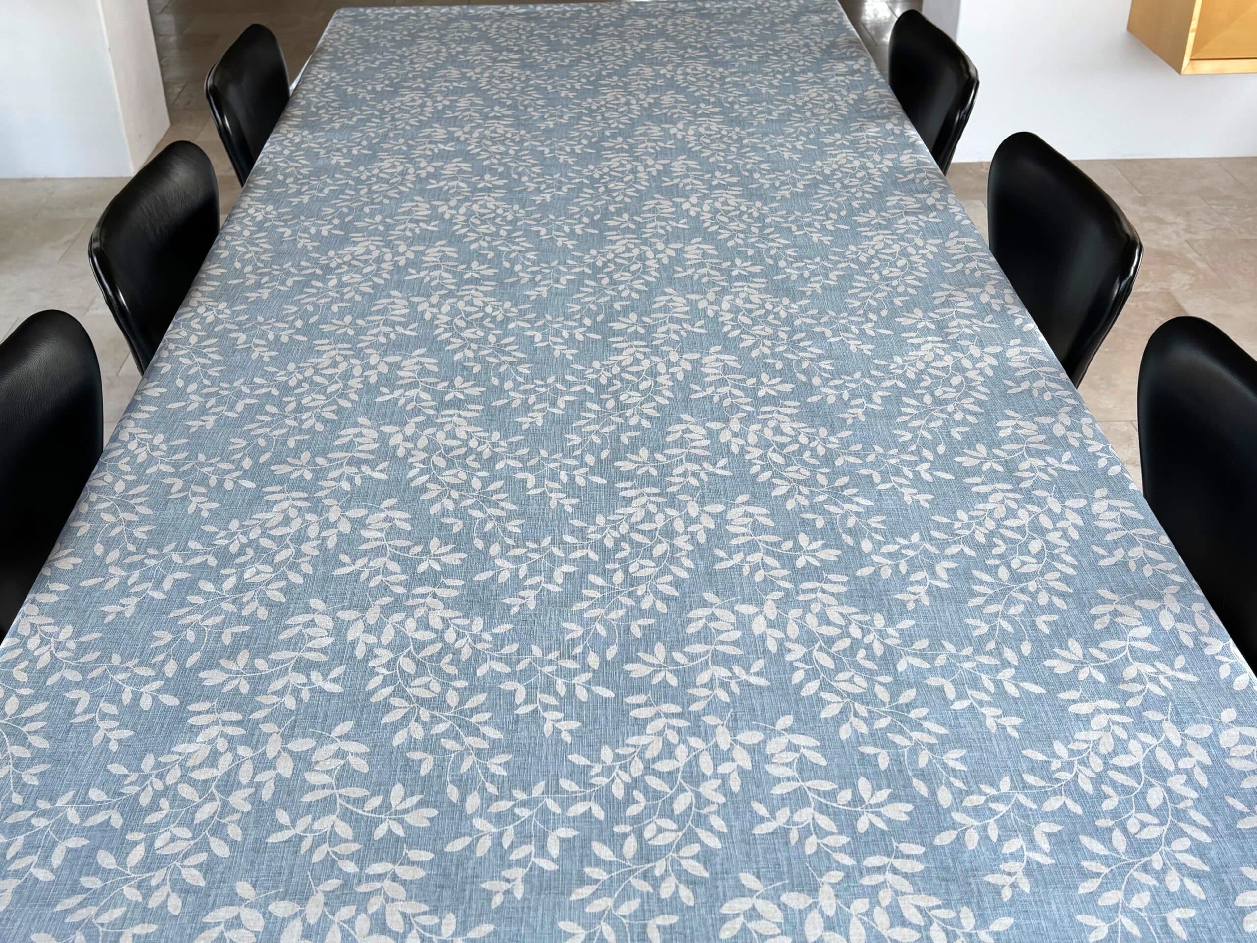 Voksdug Blå jeanslook med hvid bladranke, 140 cm