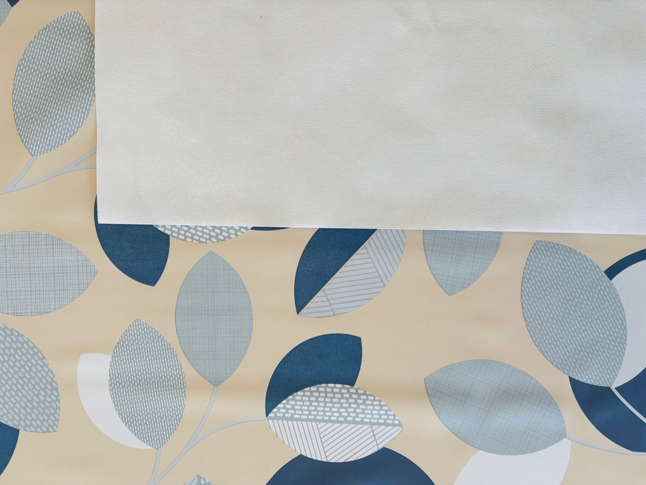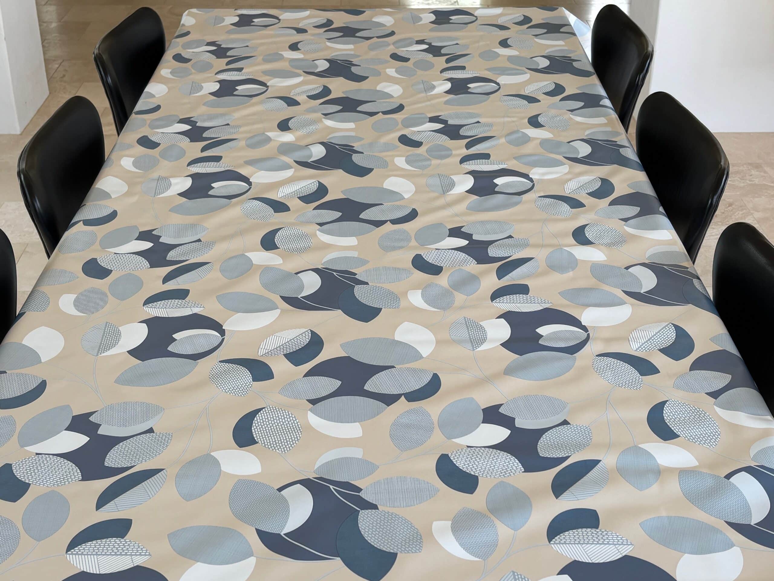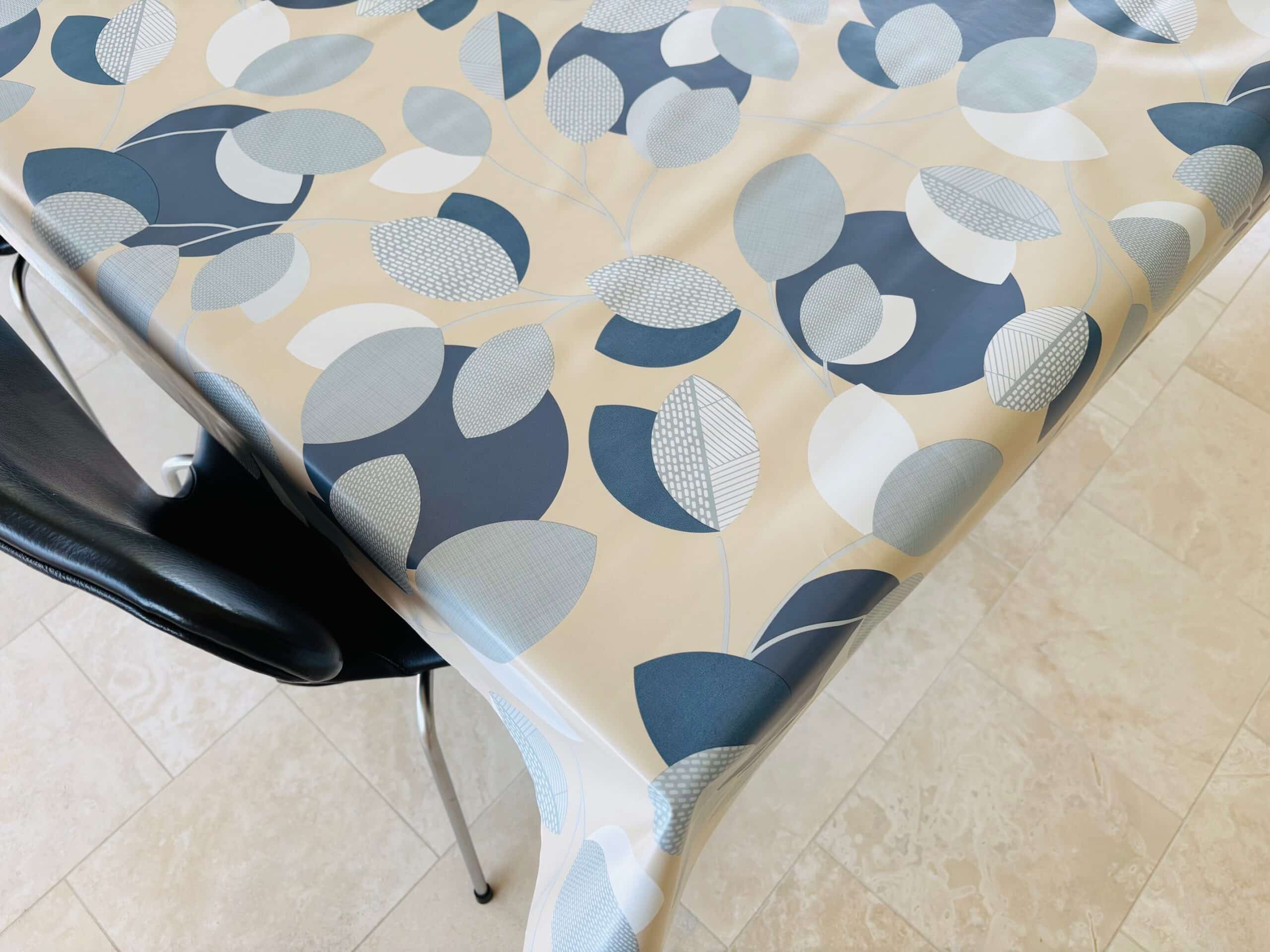 Voksdug Lys beige med blå og hvide blade, 140 cm