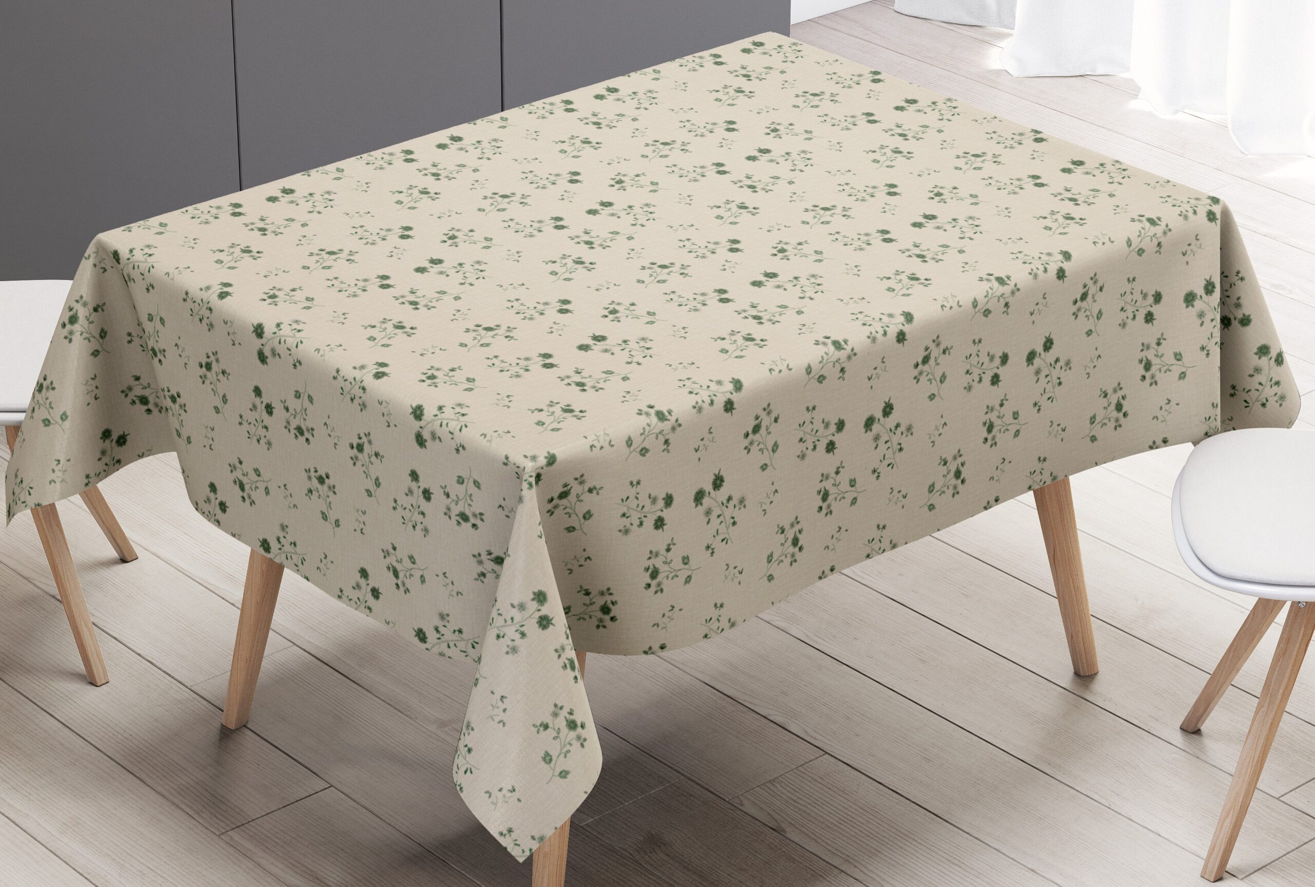 Voksdug Lys Beige med Grøn Blomsterranke, 140
